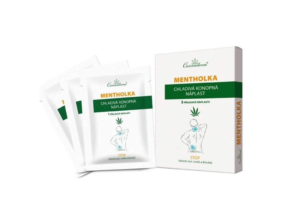 Cannaderm Mentholka chladivé konopné náplasti s obsahom konopného oleja a mentolu vďaka chladivému účinku na postihnuté miesta prináša rýchlu a dlhotrvajúcu úľavu pri natiahnutí svalov, pri stuhnutosti chrbta a kĺbov, pri únave a preťažovaní pohybového aparátu. Hydrogélová forma náplasti zabezpečuje okamžitý nástup chladivého efektu a ľahké priľnutie k pokožke. Zároveň umožňuje jednoduché odstránenie náplasti z pokožky bez nepríjemného podráždenia kože a trhania chĺpkov.