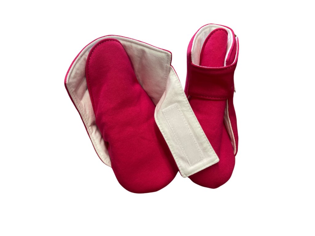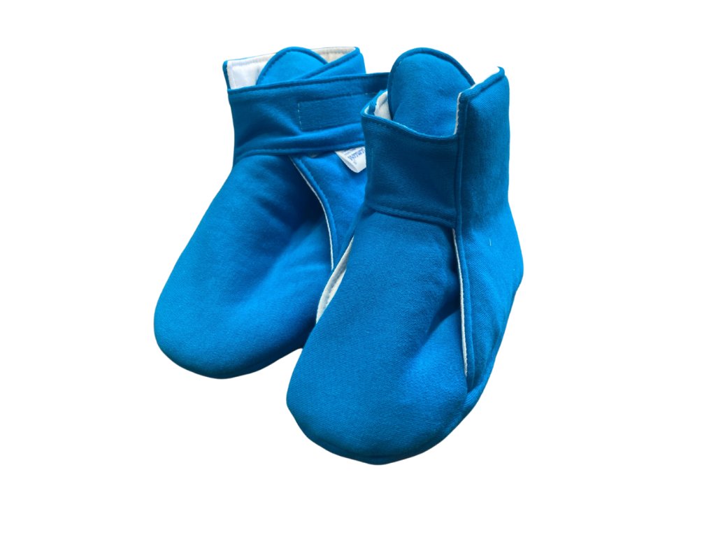 Zábalové papučky sú určené pre opakované použitie a sú vyrábané ručne v našej chránenej dielni v Českej republike. Použité materiály sú certifikované pre deti od 3 rokov.